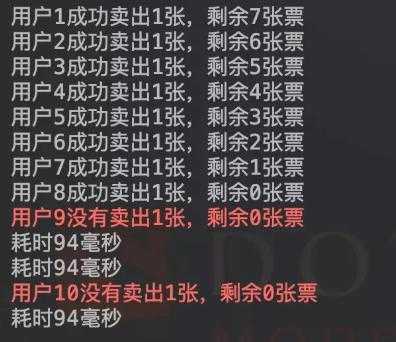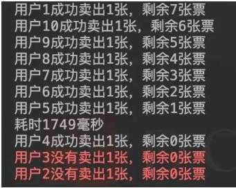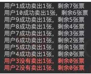果不其然,结果有两个人没有成功抢到票,看来我们的目地达成了。