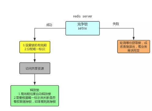 这里我们选择Redis来作为分布式锁,多个系统在Redis中set同一个key,只有key不存在的时候,才能设置成功,并且该key会对应其中一个系统的唯一标识,当该系统访问资源结束后,将key删除,则达到了释放锁的目的。