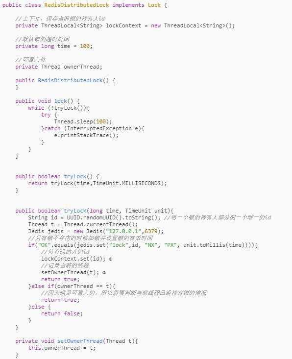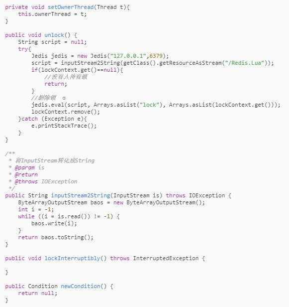 - 用一个上下文全局变量来记录持有锁的人的uuid,解锁的时候需要将该uuid作为参数传入Lua脚本中,来判断是否可以解锁。